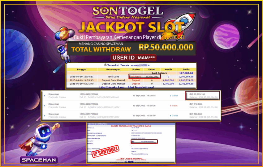 JP SONTOGEL CASINO SPACEMAN Rp.50.000.000