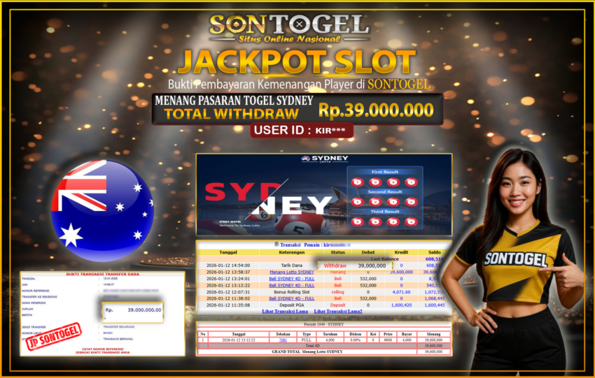 BUKTI JP SONTOGEL – Situs Togel Online, Live Casino dan Slot Online Terpercaya yang terbukti membayar berapapun kemenangan Anda tanpa kekurangan sepeserpun. Jika Anda masih mencari Situs Terpercaya, jangan ragu untuk bermain di SONTOGEL. Dalam 1 akun Anda bisa menikmati semua permainan dengan minimal deposit hanya Rp. 5.000,- saja.