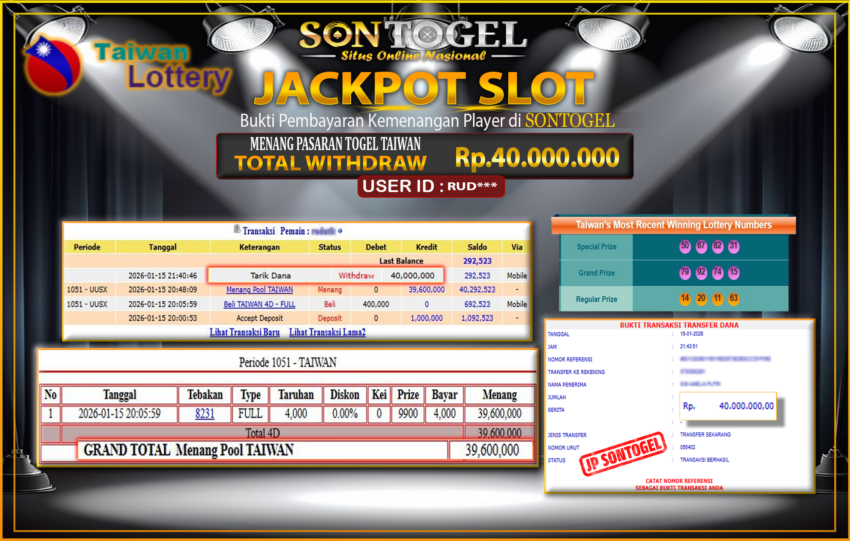Berikut ini adalah BUKTI JP SONTOGEL yang sudah diproseskan ke rekening member kami