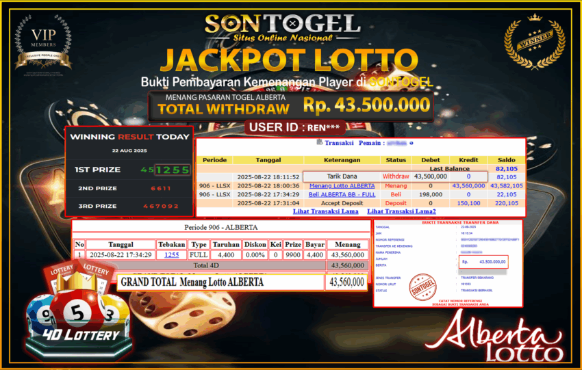 JP SONTOGEL PASARAN TOGEL ALBERTA Rp.43.500.000
