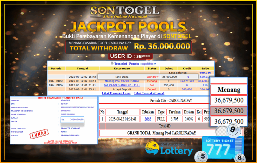 BUKTI JP SONTOGEL – Situs Togel Online, Live Casino dan Slot Online Terpercaya yang terbukti membayar berapapun kemenangan Anda tanpa kekurangan sepeserpun. Jika Anda masih mencari Situs Terpercaya, jangan ragu untuk bermain di SONTOGEL. Dalam 1 akun Anda bisa menikmati semua permainan dengan minimal deposit hanya Rp. 5.000,- saja.