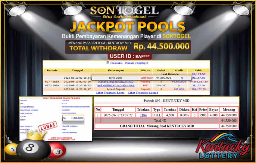 JP SONTOGEL PASARAN TOGEL KENTUCKY Rp.44.500.000