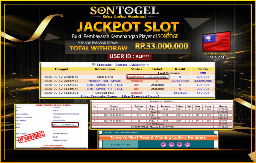 JP SONTOGEL PASARAN TOGEL TAIWAN Rp.33.000.000