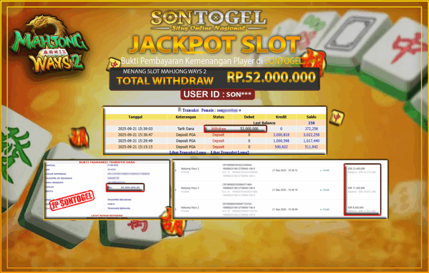 JP SONTOGEL SLOT MAHJONG WAYS 2 Rp.52.000.000